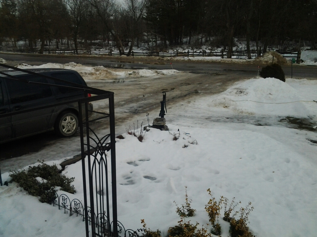 We're experiencing a mini-spring here. It's about 7C and the snow and ice is quickly melting. The yard and drive are a muddy mess. Makes us wonder how the maple syrup season will be affected as well as all the fruit trees. Last year an early spring meant blossoms before the bees and many blooms went unpollinated and the fruit crops were almost non-existent. We got just a couple of apples from two trees. Hopefully winter weather will soon return and things can get back to normal.